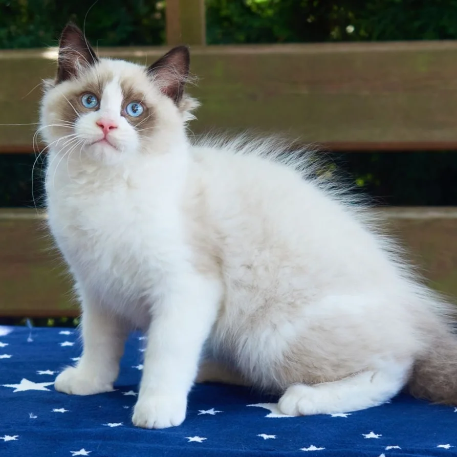 Ragdoll kittens are renowned for their striking appearance and gentle temperament. Originating in California in the 1960s, this breed is characterized by its large size, semi-long fur, and captivating blue eyes. Ragdolls have a unique color-point pattern, which means their extremities—ears, face, paws, and tail—are a darker shade compared to their body. This breed comes in various colors and patterns, including mitted, bicolor, and colorpoint.